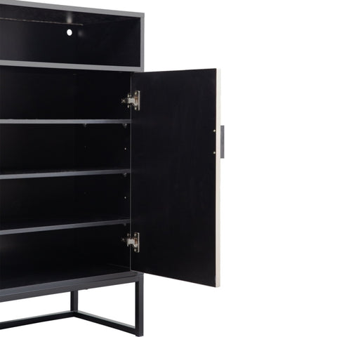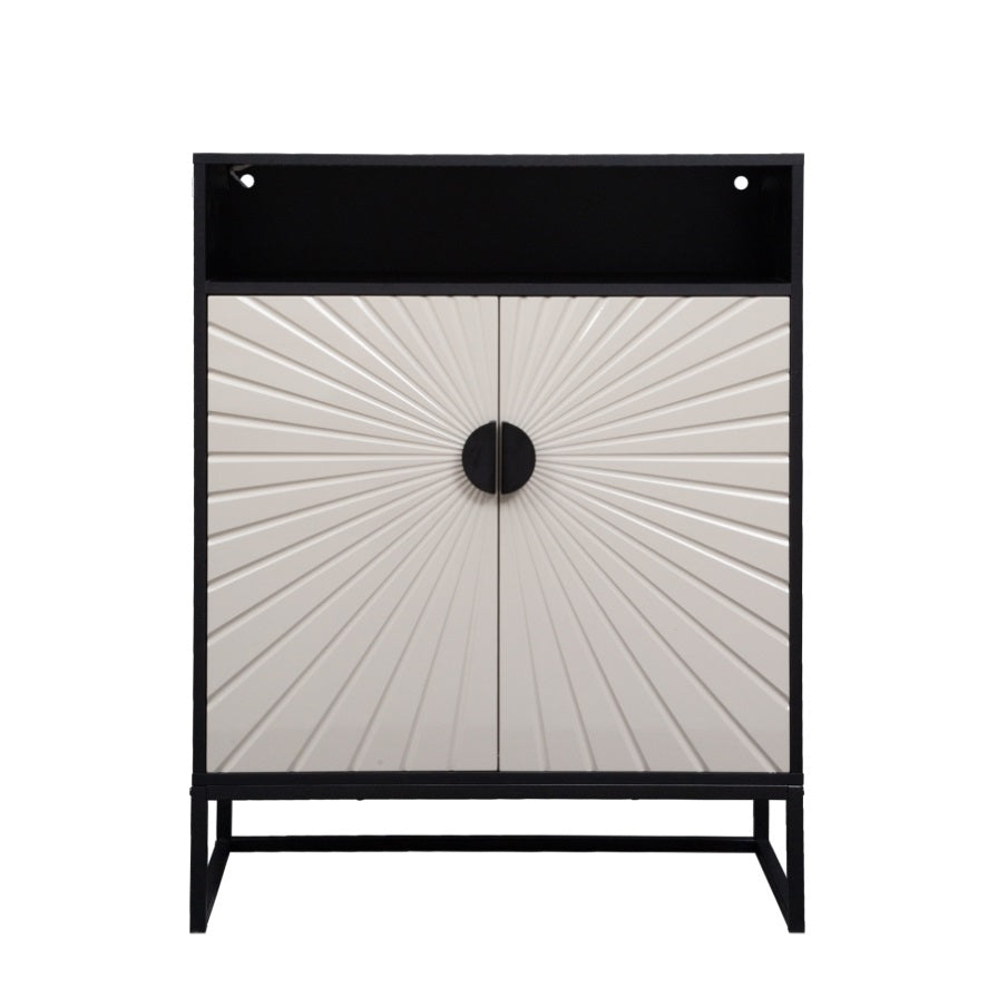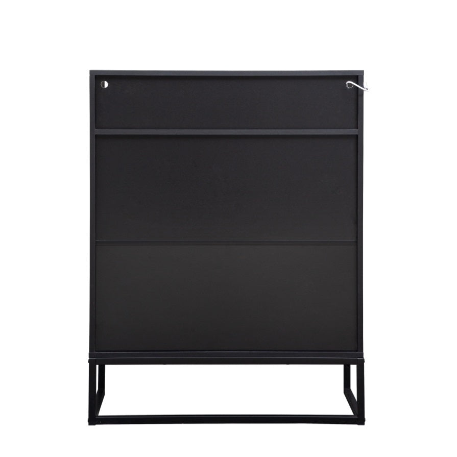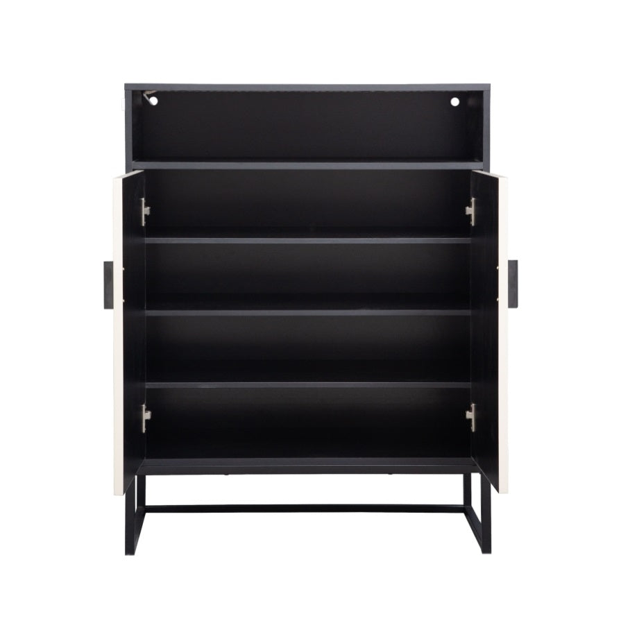 The shoe cabinet with doors is made of high-quality MDF and black metal base, which is sturdy and durable. It helps make the shoe rack more stable on uneven floors while protecting the floor from scratches.