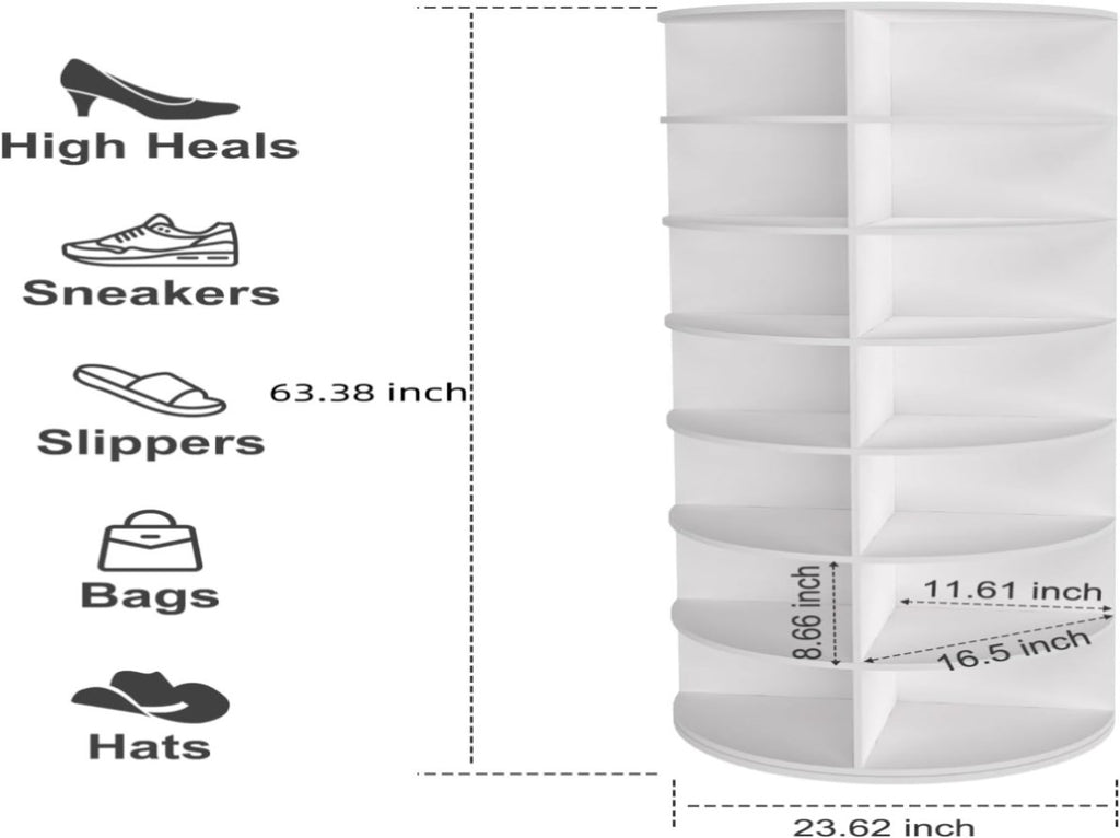 7-TIER SHOE DISPLAY HOLDER : Keep your home clean and keep track of your shoes better with this spinning shoe rack tower; Makes every shoe visible and save so much of your room closet storage space
