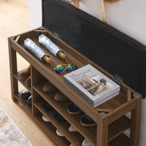 This rubberwood frame is paired with a polyurethane leather seat cushion, which is both textured and very comfortable. Its adjustable height design, combined with three layers of ventilation and moisture-proof storage space as well as the storage space beneath the seat, effectively solves the clutter problem at the entrance and enhances the overall home style.