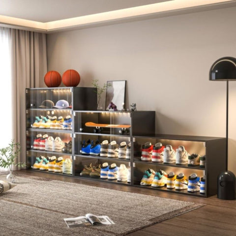 Black Glass Door Shoe Box Shoe Storage Cabinet For Sneakers With RGB Led Light 08714193