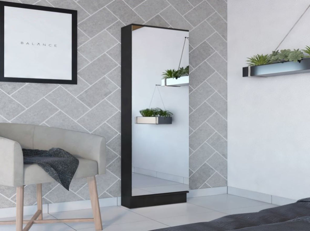 Black Wengue Rectangle Tall Shoe Cabinet with Mirror B06280407