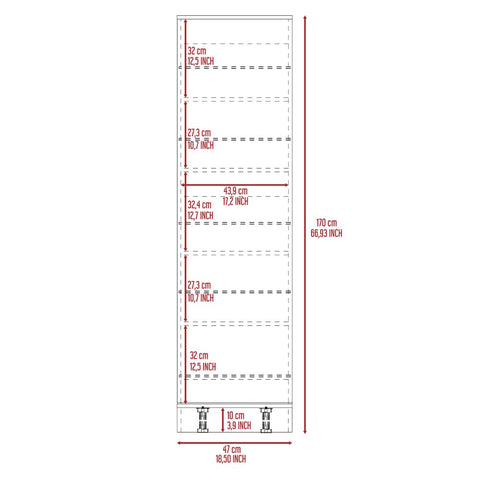| Dimensions | 66.93 inches high x 18.5 inches wide x 7.48 inches deep |
