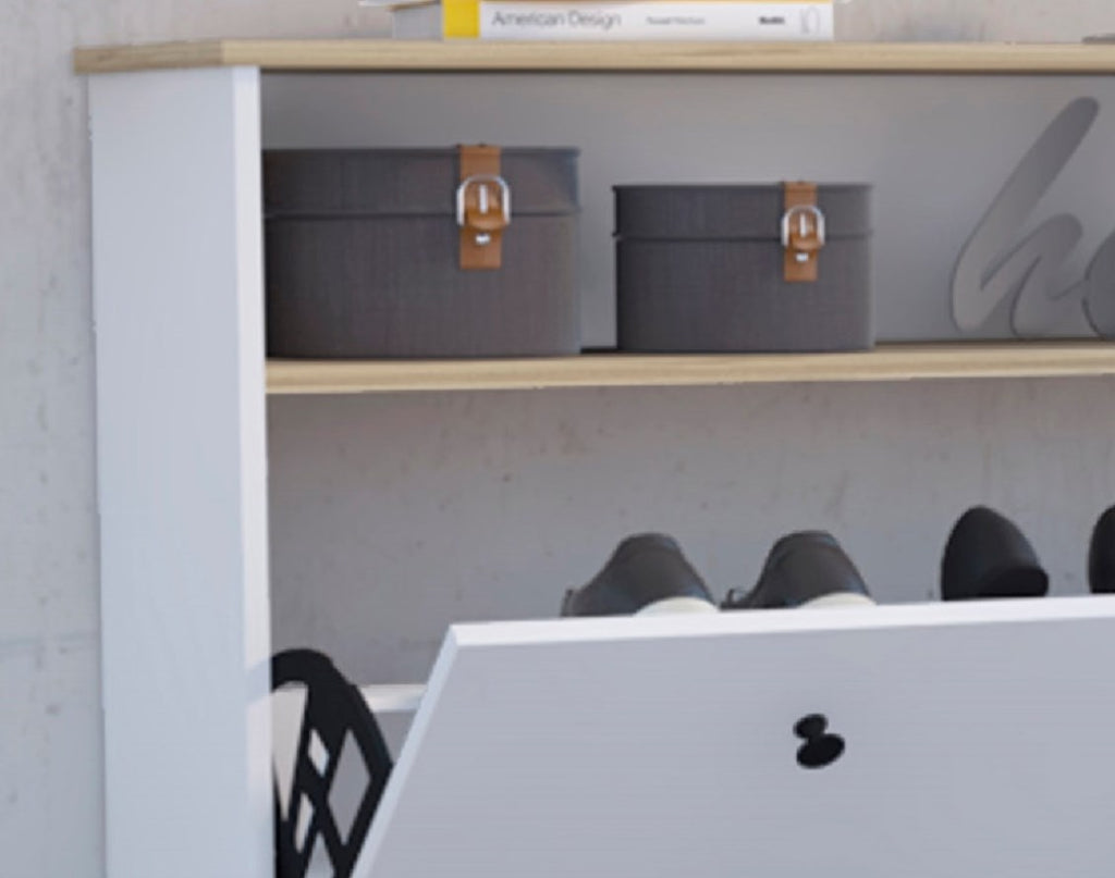 Calgary Shoe Rack, Superior Top, One Open Shelf, Two Extendable Shelves -Light Oak / White B20092079