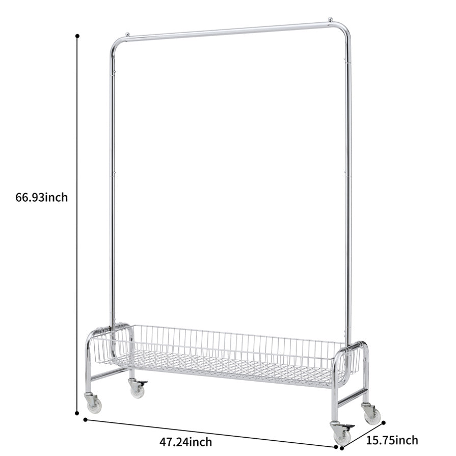 Garment Rack with Basket on Wheels Rolling Clothes Rack for Hanging Clothes Heavy Duty Garment W1903P203897
