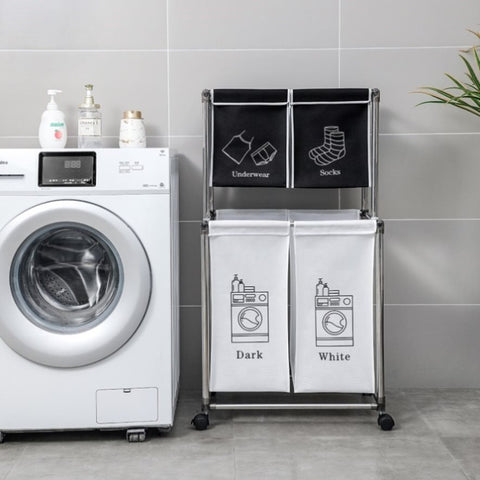 Laundry Basket 2 Tier Clothes Sorter with 4 Removable Bags to Organize Clothes, With Four Wheels, 68926337
