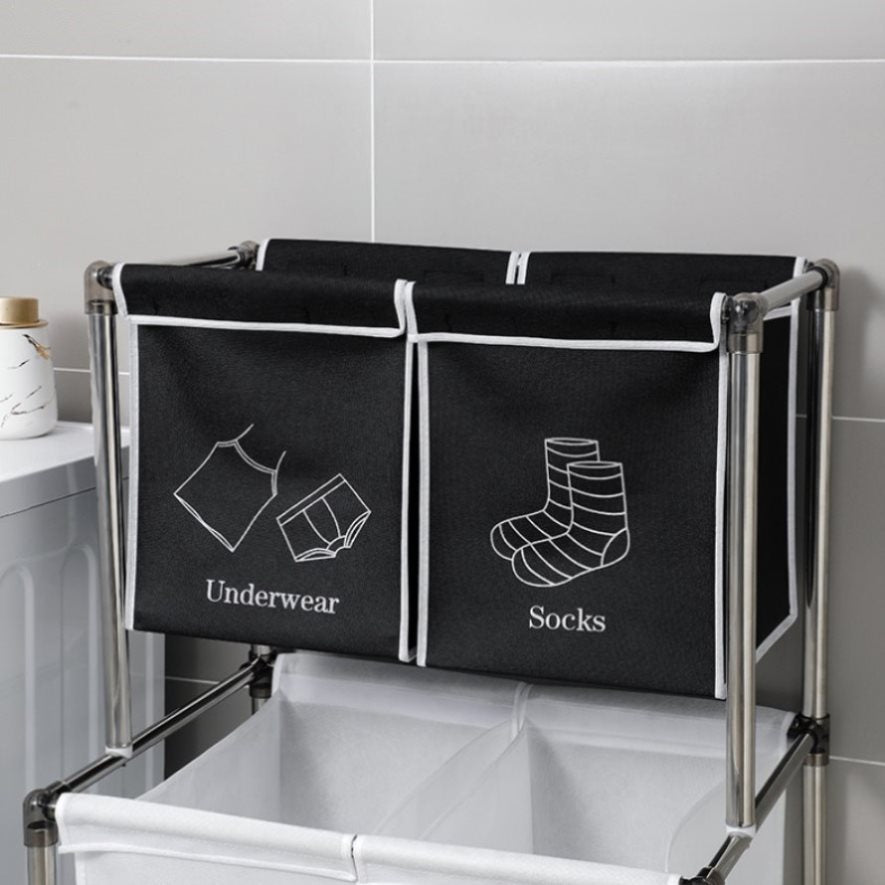 CLOTHES LANUDRY SORTING - STQCPJ Dirty clothes laundry sorter hamper with 4 removable canvas labeled bags. You can distinguish your socks, underwear, which I think should be separated. It also sorts dark and light colored clothes to prevent them from being stained.