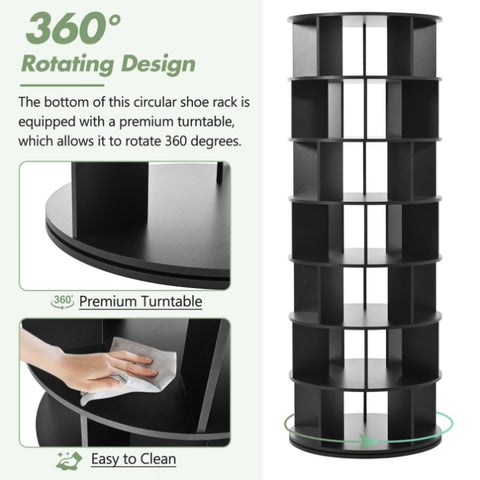 ON-TREND 23.6'' Rotating Shoe Rack Tower, 7-Tier Spinning Shoe Shelf with 5 Grids Per Layer, N721P180790B