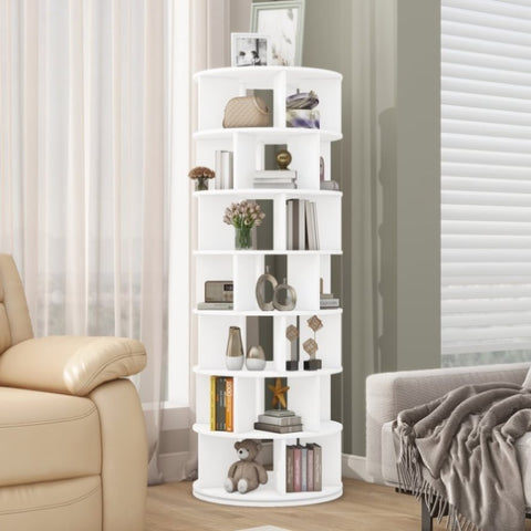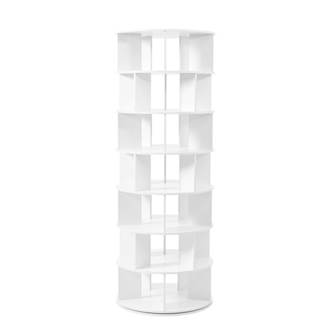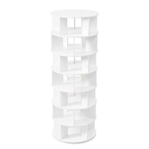 The rotating shoe rack boasts 7 tiers, each with 5 compartments. You can adjust the number of tiers according to your needs, thereby providing a flexible storage solution. It can fit up to 35 pairs of shoes or bags in the limited area.