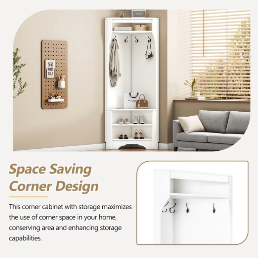 Measuring 29.5''(W) x 18.2''(D) x 71.6''(H), this corner cabinet with storage maximizes the use of corner space in your home, conserving area and enhancing storage capabilities. This design is ideally suited for small apartments or units.