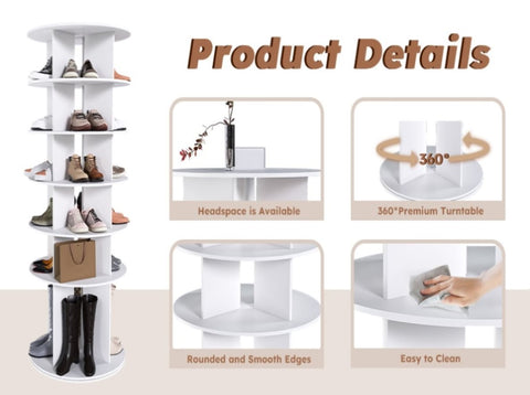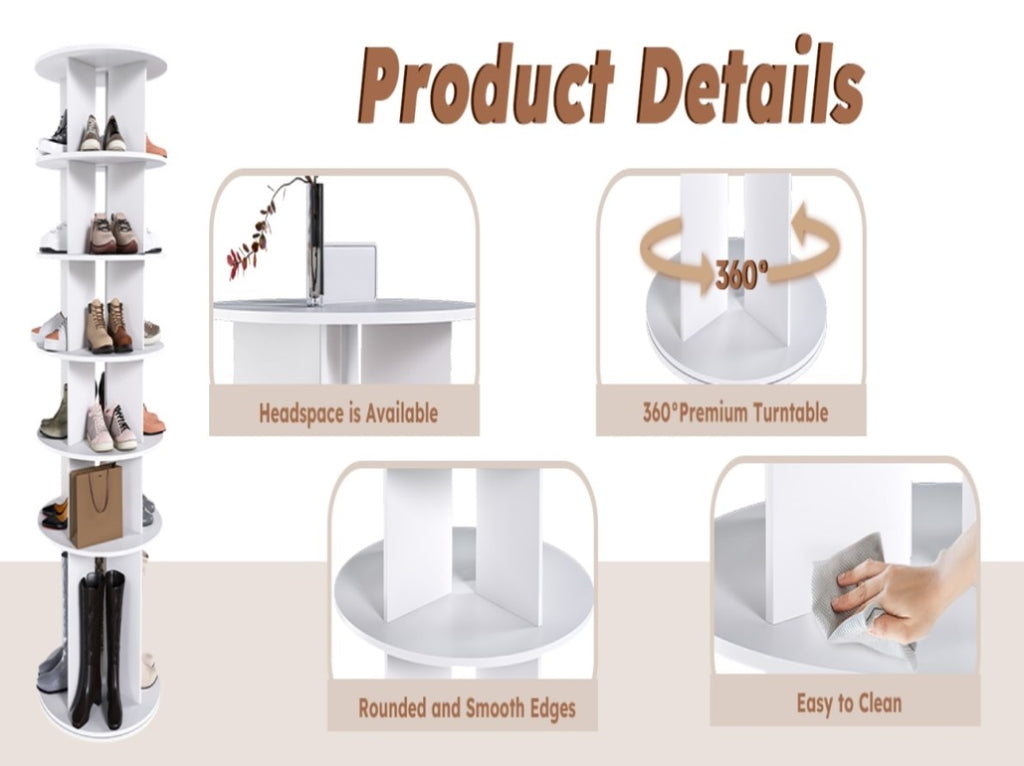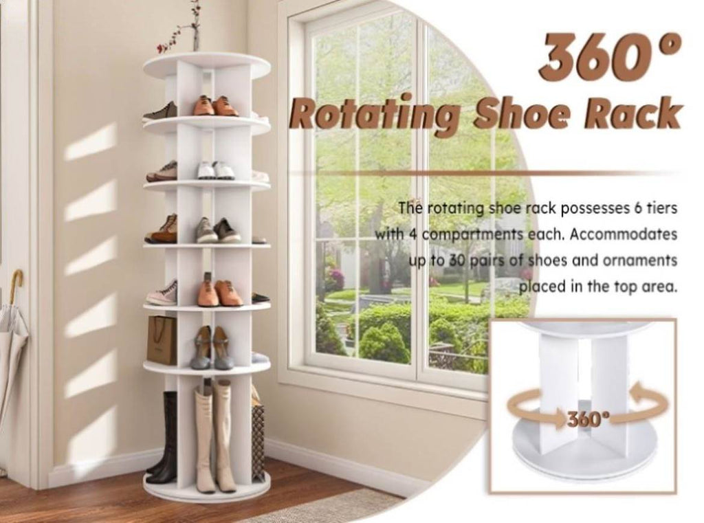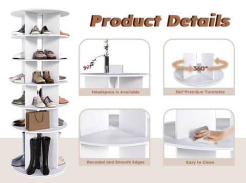 6-TIER SHOE DISPLAY HOLDER - Keep your home clean and keep track of your shoes better with this spinning shoe rack tower; Makes every shoe visible and save so much of your room closet storage space