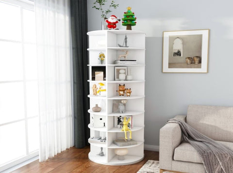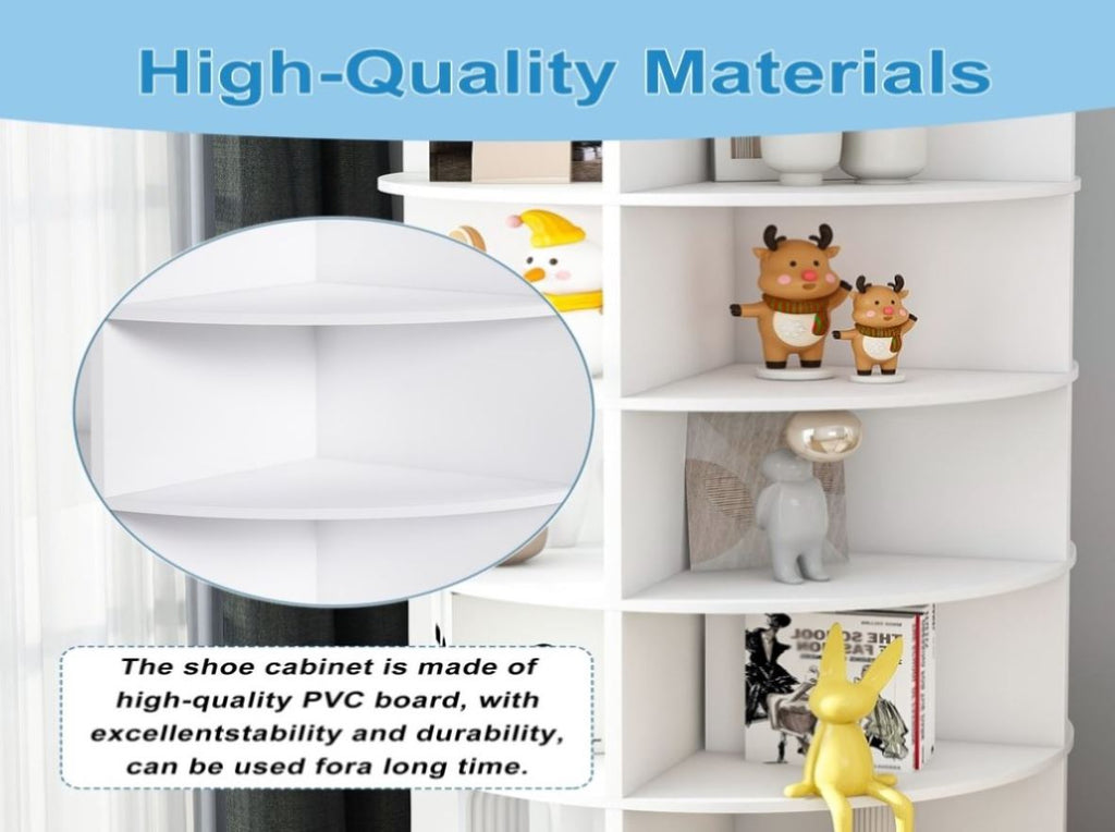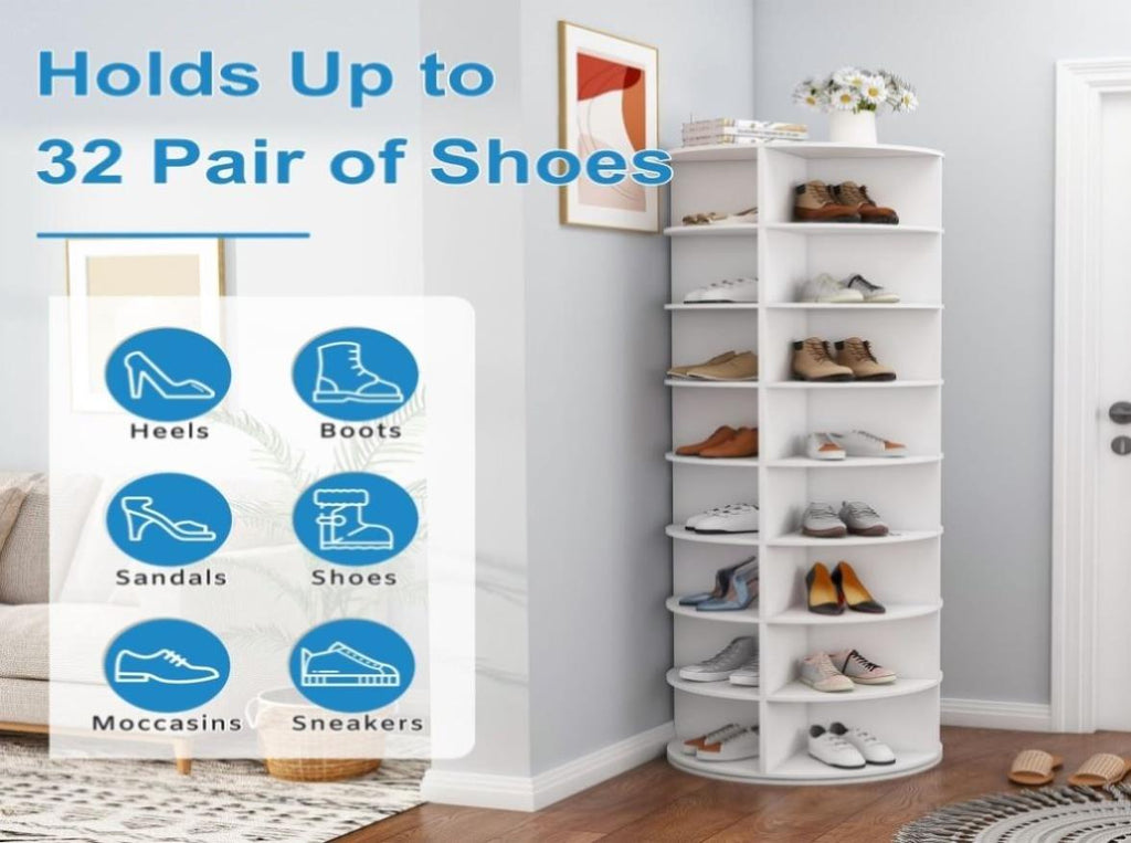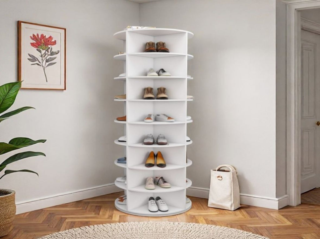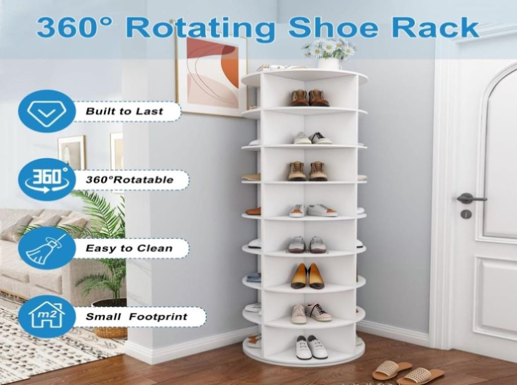 Effortless Visibility & Organization via 8-Tier Spinning System – Rotating lazy susan mechanism ensures every shoe is instantly visible and accessible; no more digging through piles to find your favorite pair, keeping your home clean and tidy.