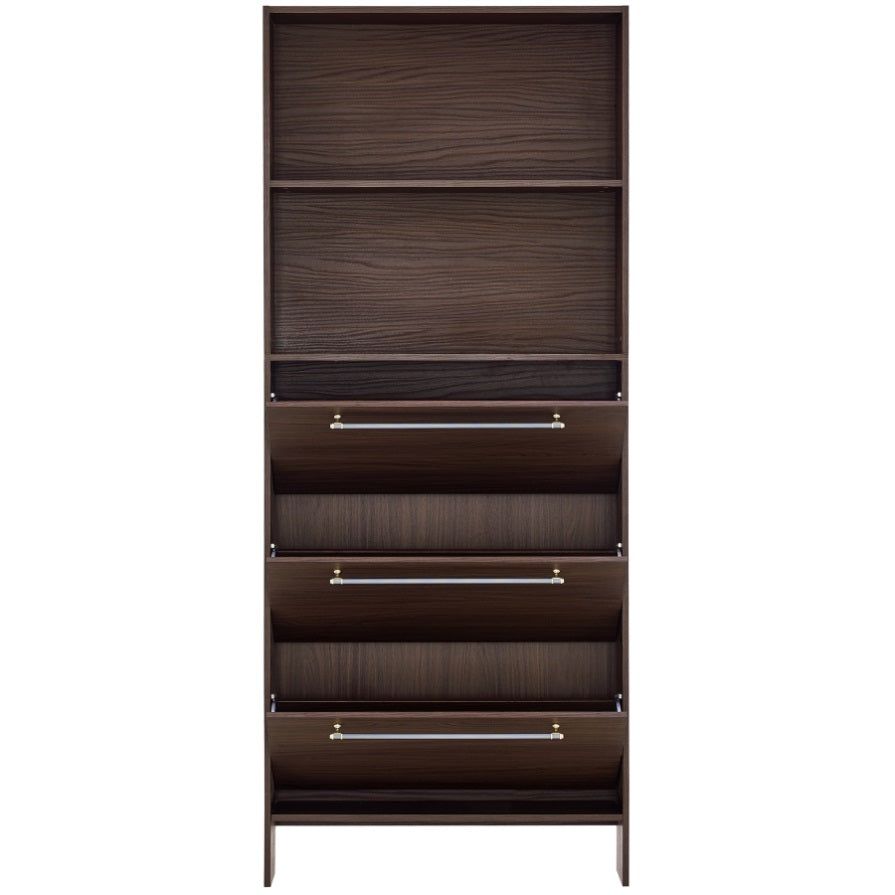 Eaturing a simple line pattern, gold handles and solid wood legs, this beautiful and sleek shoe cabinet adds style to your home. A perfect blend of function and form, this shoe cabinet is suitable for entryways, living rooms, hallways, or apartments.