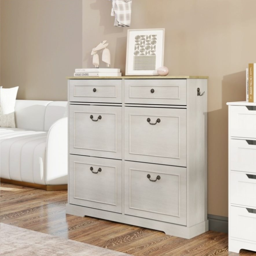 Shoe Storage Cabinet with 2 Drawers, 4 Flip Drawers, Freestanding Shoe Cabinet Organizer with W1120P290633