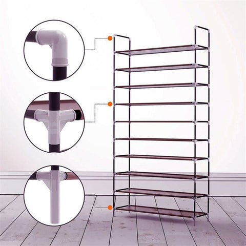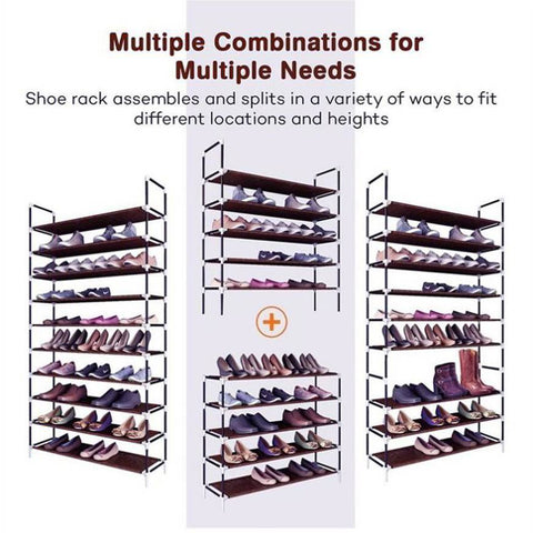 A concise, compact and nice-looking shoe rack must be ideal for you to collect your messy shoes and keep your house tidy! I do believe you must be satisfied with this Simple Assembly 10 Tiers Non-woven Fabric Shoe Rack with Handle! Made of highly superior metal and non-woven fabric material, this shoe rack, after being well assembled, will ensure solid structure and high durability. It is meticulously shaped into 10 tiers, providing sufficient and balanced room for shoes. Just order one!