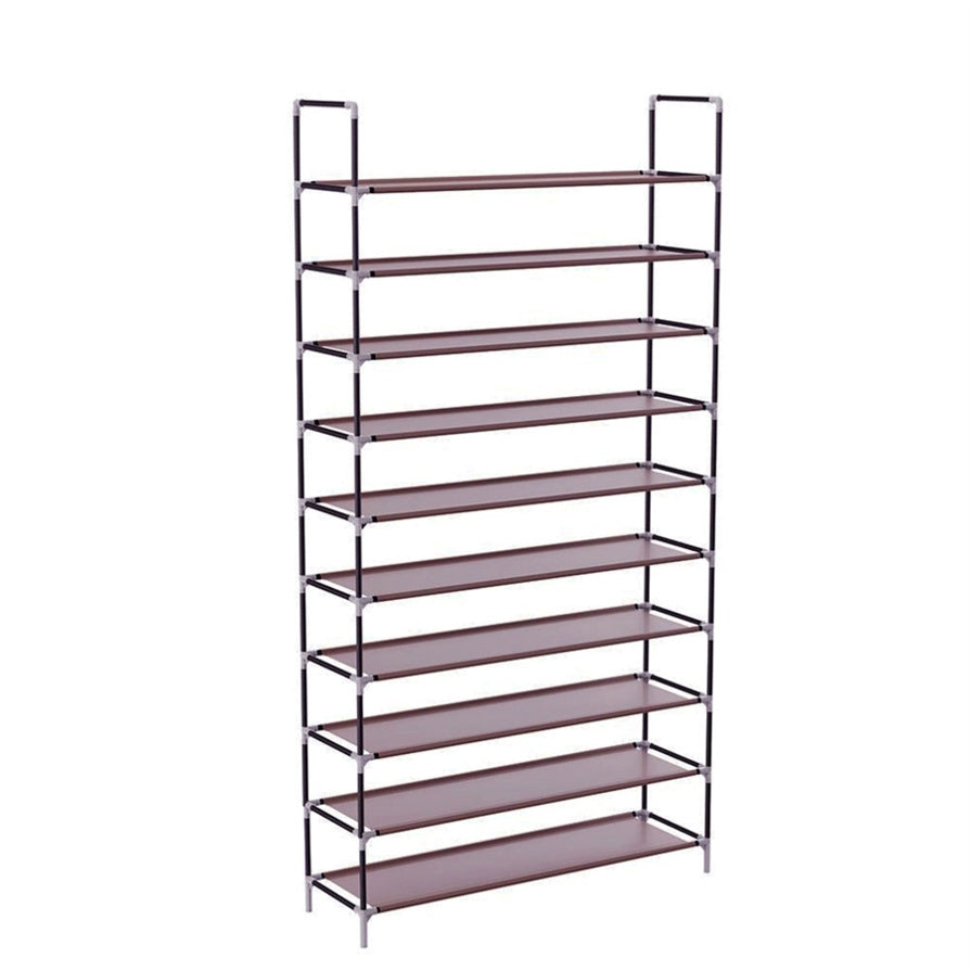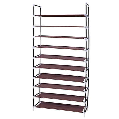Simple Assembly 10 Tiers Non-woven Fabric Shoe Rack with Handle Dark Brown 52546666