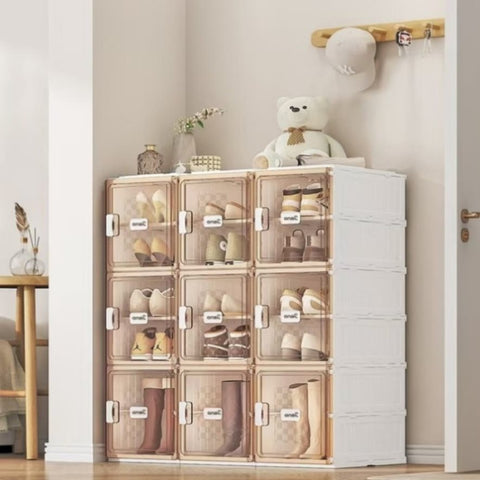 Dustproof magnetic door shoe rack: The transparent door panel allows for easy shoe retrieval while keeping them protected from dust and water. The magnetic doors ensure effortless access to your shoes, making organization a breeze. Upgrade your shoe storage with this stylish and practical solution.
