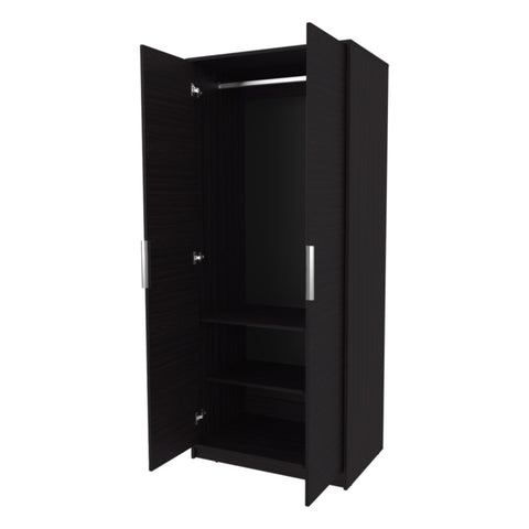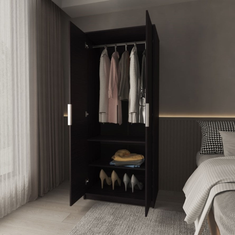 Wardrobe Berlin, Two Doors, Hanging Rod, Two Shelves, Shoe Rack, Bedroom, Wengue