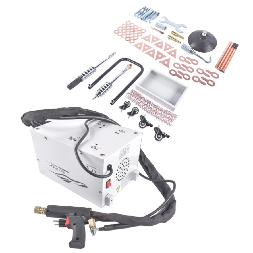 This spot welder dent puller is built with a stainless-steel shell, thickened copper wires, and a copper transformer, sturdy and durable. In addition, the efficient cooling system provides this dent spot welder with a high-security factor. With durable welding guns and four welding modes, this dent puller kit can fix common dents of the vehicle body and other metal deformation, easy to operate, compact, and portable.