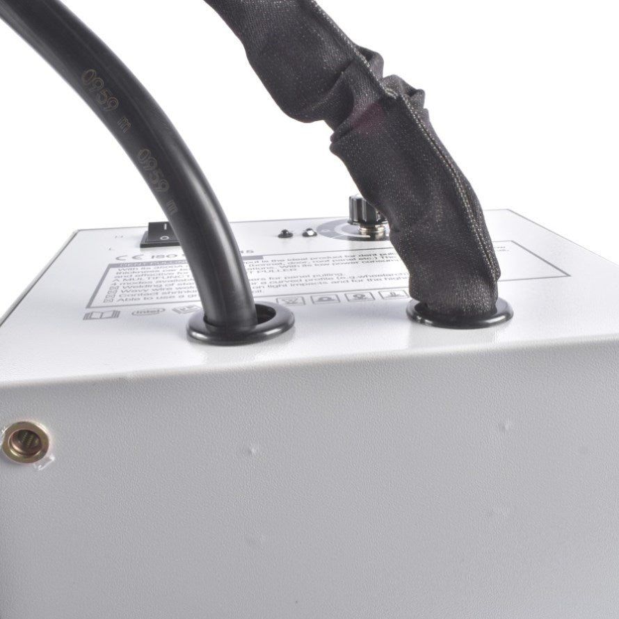 The Point Stud Welder Extractor is equipped with two universal and two directional sliding wheels and a portable handle for easy mobility. It also provides storage space for all accessories.