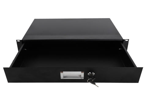 19" 2U Steel Plate DJ Drawer Equipment Cabinet with Keys Black 19646401
