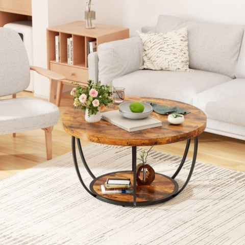 31.5" Round Coffee Table, 2-Tier Coffee Tables for Living Room, Small Wood Coffee Table with T3210P350940