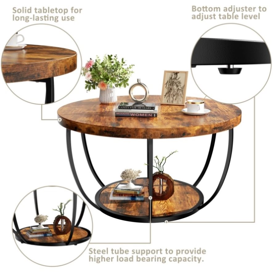 Sturdy Coffee Tables for Living Room: Made of engineered wood with high-quality painted metal legs, this round coffee table has a maximum weight capacity of 110 lbs. for sturdy construction and durability. An adjuster on the bottom helps you level the tabletop to accommodate a variety of floors and protects floors from scratches.