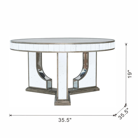35.5x35.5x19" Round Coffee Table with Elegant Floral Design and Mirrored Silver Finish W2078P248214