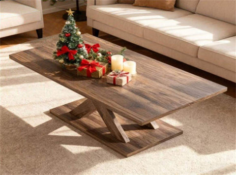 • Geometric Elegance: This coffee table boasts a geometrically arranged support structure that complements the wooden texture, showcasing a blend of modern and rustic styles. Its harmonious beauty enhances the aesthetic of your room.