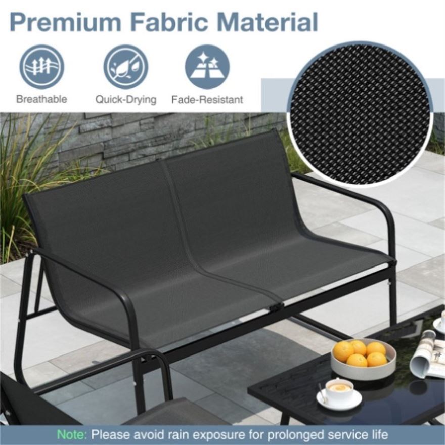 ● Premium-Quality Fabric: Made with fade-resistant fabric, the outdoor conversation set's chairs and loveseat promise lasting enjoyment. Moreover, the fabric is also breathable and quick-drying, providing comfort during leisure moments. Note: Please avoid rain exposure for prolonged service life.
