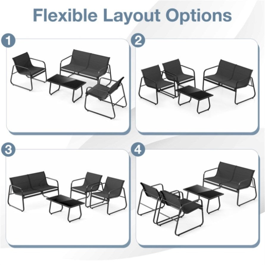 ● Various Layouts & Wide Use: Coming with 2 chairs, 1 loveseat, and 1 table, the balcony furniture set enables you to configure it according to your space and preference. Perfect for various outdoor settings like patios, gardens, or poolside, it enhances these areas, making them perfect spots for relaxation and socializing.