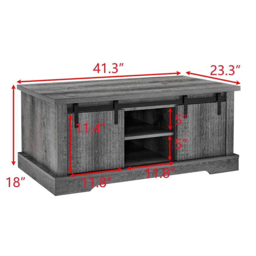 41.3 Inch Coffee Table Storage and Sliding Wood Door, Farmhouse and Industrial Cocktail Table 70563539