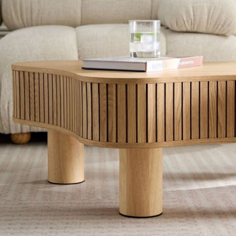 42.52 Inch Modern Wooden Handcraft Drum Coffee Table Irregular Shaped Coffee Table for Living W2582P279956