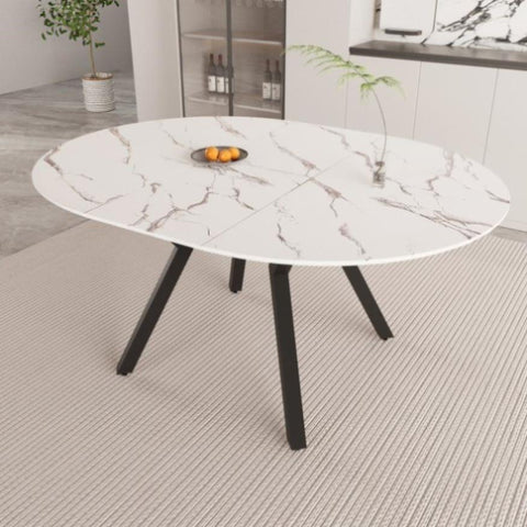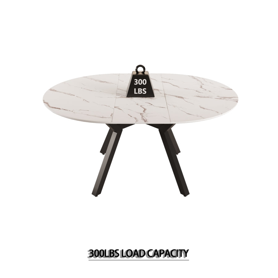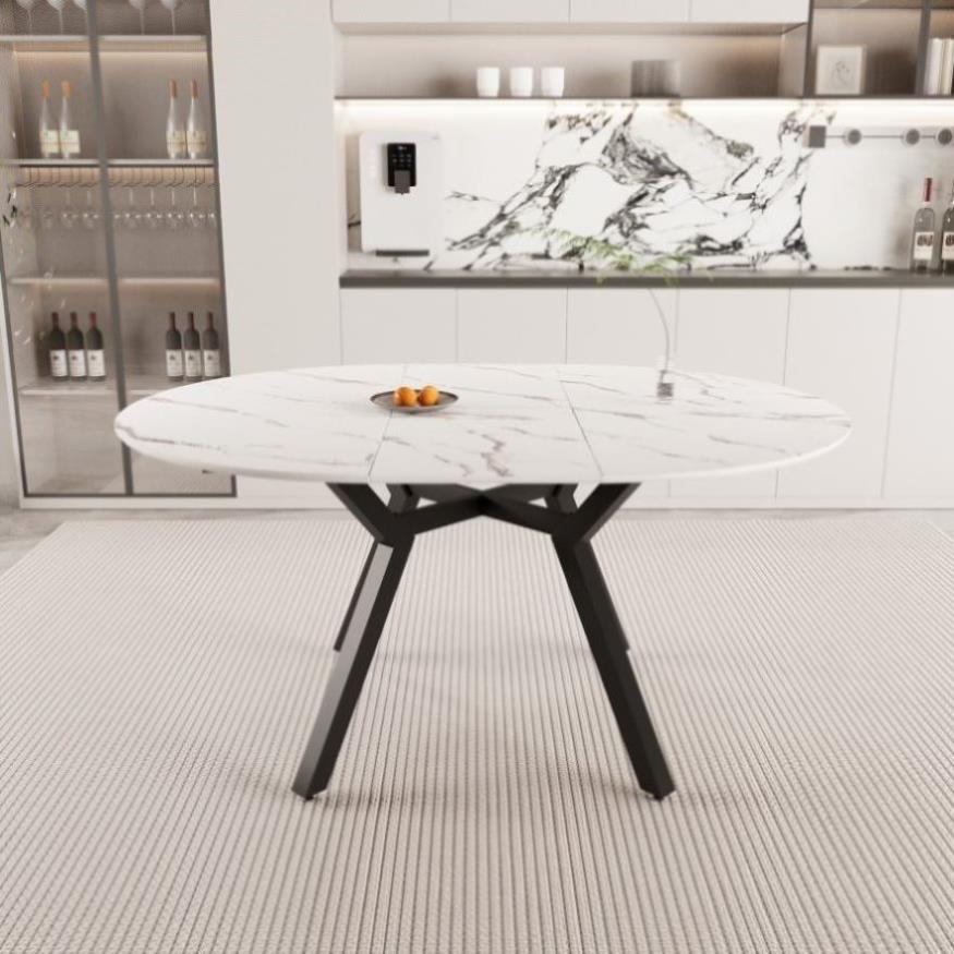 - 2.High quality MDF round table: This round table is made of high-quality MDF material and matte black metal, which is more sturdy and durable. The beautiful white veneer and black metal legs also make the round table look chic and fashionable.