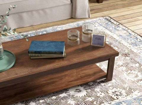 This 48 inch Coffee Table delivers a modern robust silhouette with a slightly rustic and urban feel. Skillfully crafted from Knotty Alder Solids and Veneers, this cocktail table boasts intentional distressing and a rich Whiskey finish that enhances the natural wood grain. Featuring a vast table top and one lower shelf, this coffee table will accent your upholstery beautifully and provide ample space for home décor favorites. Five caster wheels on the bottom enable you to move this cocktail table quickly and smoothly. Fully assembled upon arrival, this table is ready to unbox and enjoy.