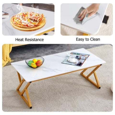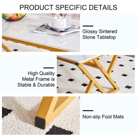 Contemporary Aesthetic Design: The white marble patterned rock tabletop, combined with golden metal legs, is not only stylish in design, but also stable and durable, with stronger load-bearing capacity, adding a touch of fashion to your living room.
