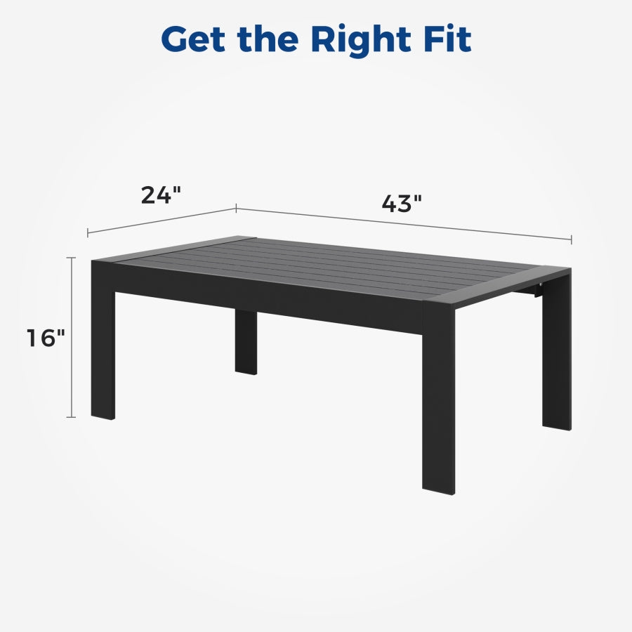 Effortless Assembly: Our outdoor patio coffee table comes with clear instructions and necessary tools, making assembly a breeze. Spend less time assembling and more time enjoying your outdoor moments. Dimensions: 43" L x 24" W x 16" H.