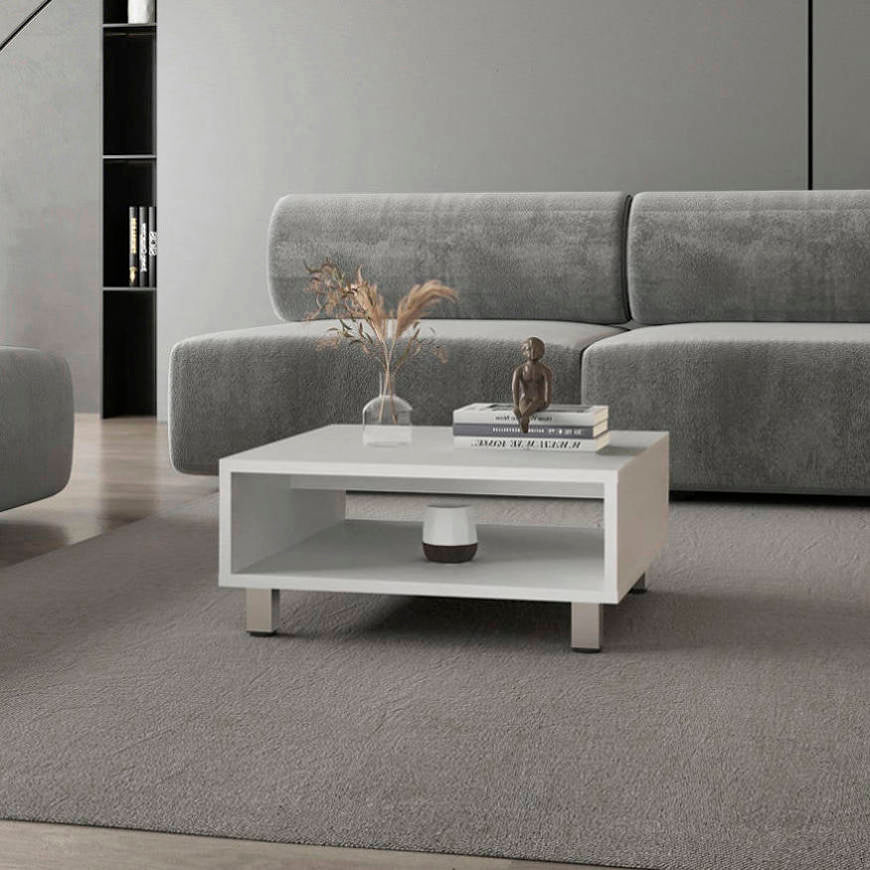 "Add a touch of modern sophistication to your living space with this beautifully designed coffee table. Made from melamine, it features a durable, scratch-resistant surface that keeps it looking new even with daily use. Its minimalist design blends seamlessly with contemporary and modern décor styles, making it an ideal centerpiece for any living room.