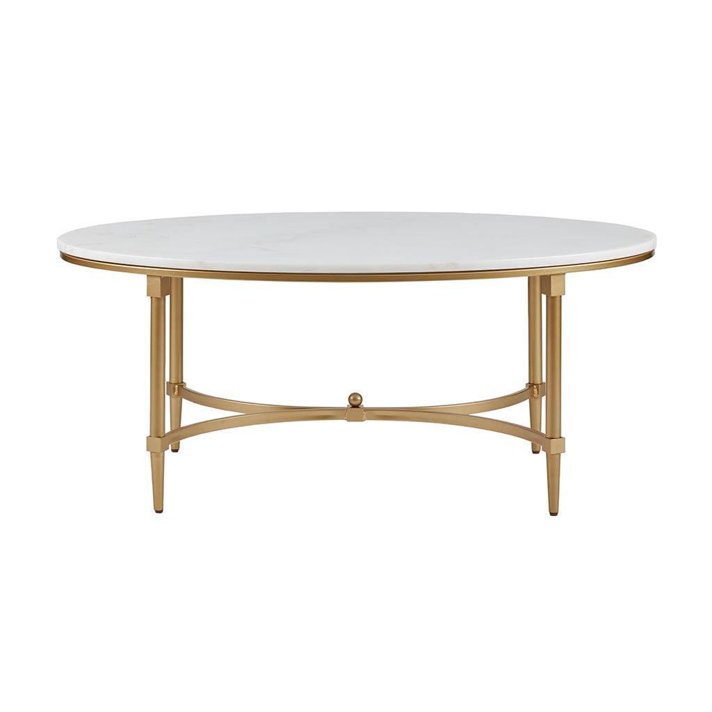 The Madison Park Signature Bordeaux Coffee Table transforms your living room with its sophisticated traditional style. Flaunting a high-class look, this coffee table showcases a white marble table top with beautifully coordinating gold metal legs. Slip this elegant coffee table into your living room or home office to bring a glamorous allure to your decor. Assembly is required.
