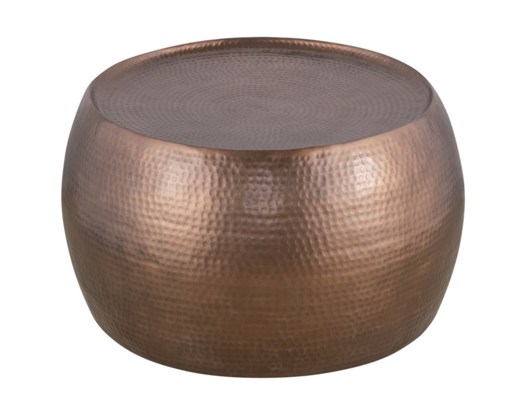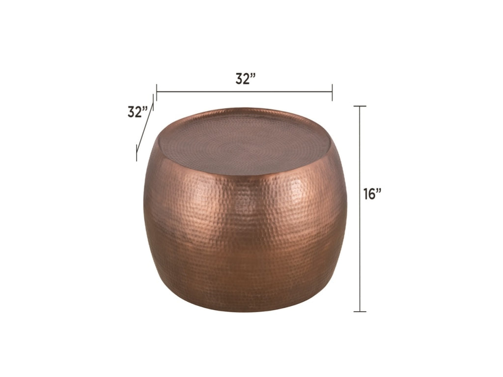 The CT 501 hand-hammered coffee table is a striking fusion of artistry and function, designed to elevate your living space with its unique texture and elegant finishes. Carefully handcrafted, its drum-shaped silhouette showcases intricate hammering that adds depth and sophistication. Available in antique copper, antique silver, or antique gold, this table complements a variety of interior styles. Its 32-inch wide surface offers ample space for drinks, books, and decorative items, making it both a statement piece and a functional addition to your home.