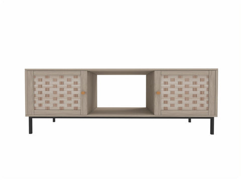 Elegant Veener Weaving Design Coffee Table with 4 Sliding Door, Wooden Center Rectangular Table with 80118663