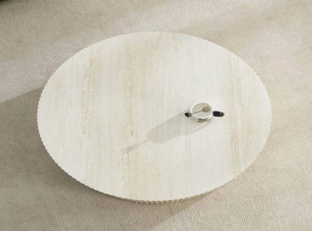 Faux travertine Round Coffee Table with Eye-Catching Relief Design