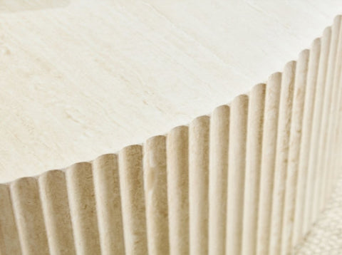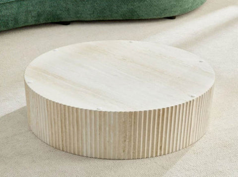 Faux travertine Round table Made from high-quality MDF, this coffee table is durable and built to last.