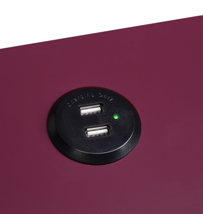 It includes a built-in USB port, making it a practical choice for charging devices while keeping them within easy reach.