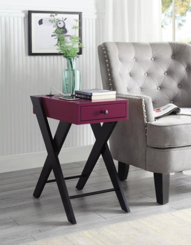 This accent table features a rich burgundy tabletop that adds a touch of sophistication to any room.