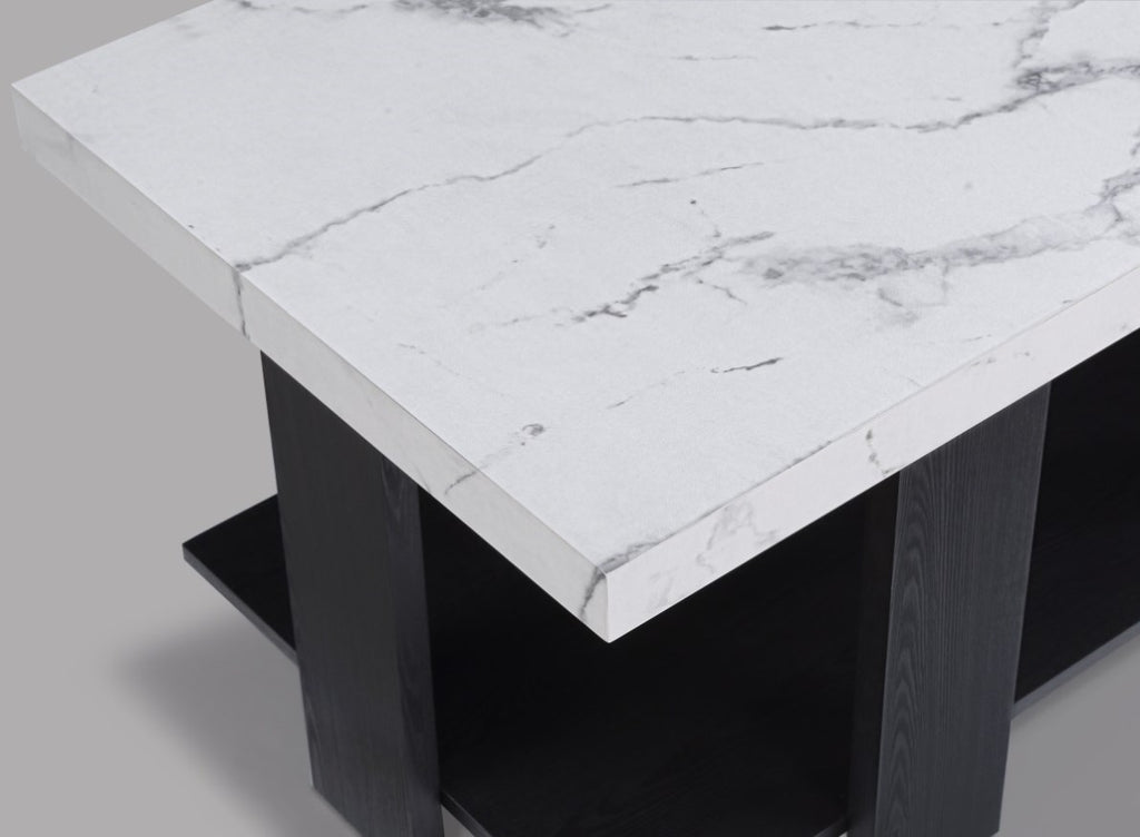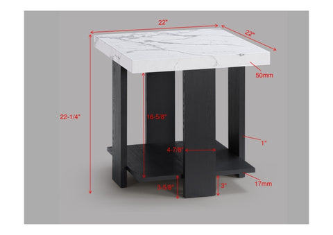 Product Description:- This contemporary cocktail set presents a bold statement in minimalist design, featuring a sleek rectangular coffee table as the centerpiece, flanked by two matching end tables. Each piece boasts a sturdy construction with clean lines and a striking faux marble finish in a classic white hue, embodying both durability and modern elegance. Product Dimensions:- Coffee Table:- 47.3" X 23.3" X 19.3"H End Table :- 22" X 22" X 22.3"H Listing Includes :- 3PCS TABLE SET (1X Coffee Table and 2x End Tables) Only. Simple Assembly Requires: