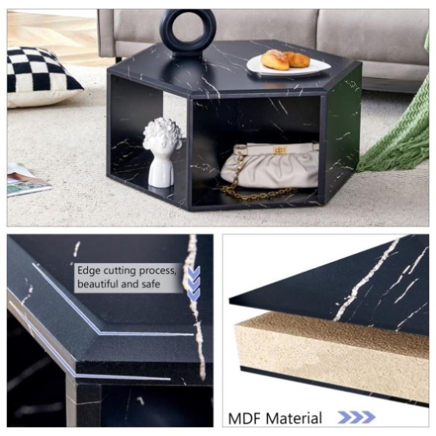 Hexagonal MDF coffee table, characteristic pattern stickers, multi-hole design to give more storage W1151P200318