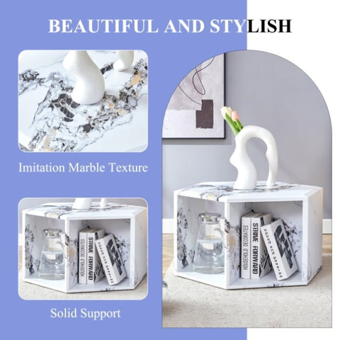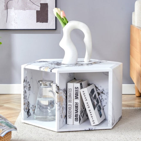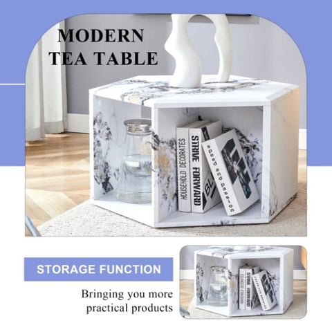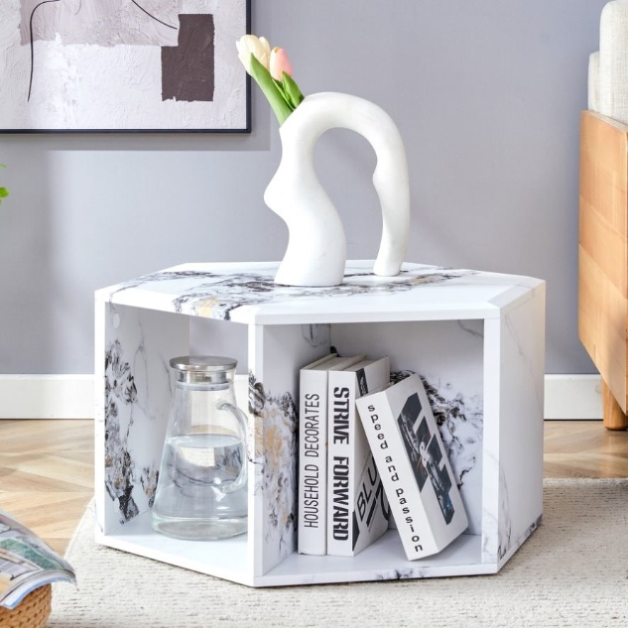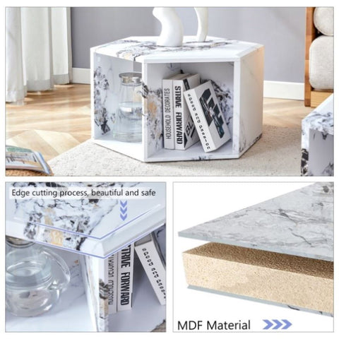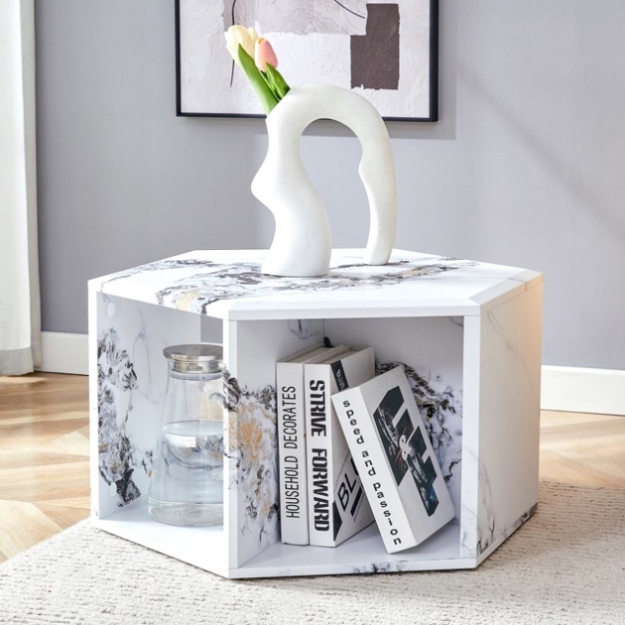 Hexagonal MDF coffee table, characteristic pattern stickers, multi-hole design to give more storage W1151P200320