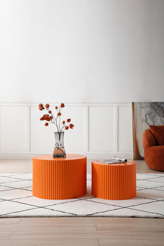 MDF Nesting Table Set of 2,Handcraft Round Coffee Table for Living Room/Leisure Area, Orange