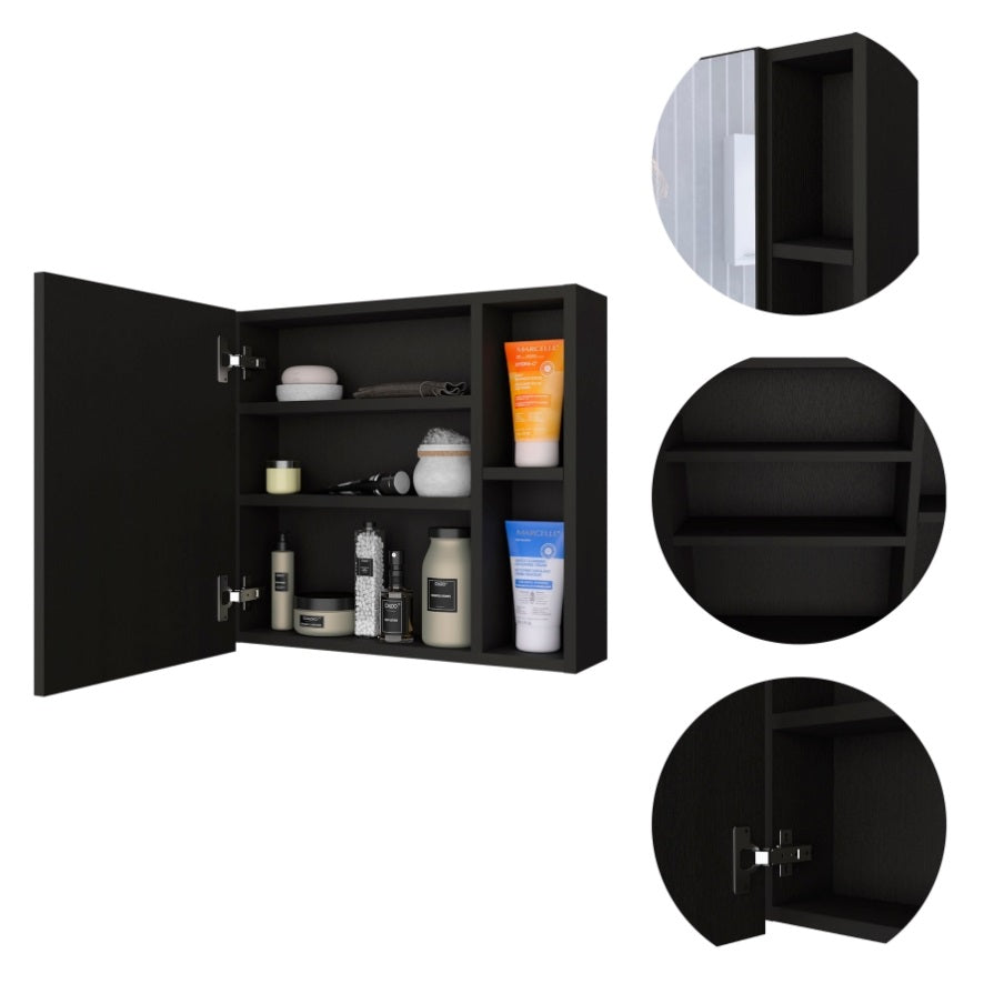 Open Shelf divided by "double-L" separator: 1) Shelf Large Side: 6.6"H x 25.2"W 2) Shelf Small Side: 6.6"H x 12"W