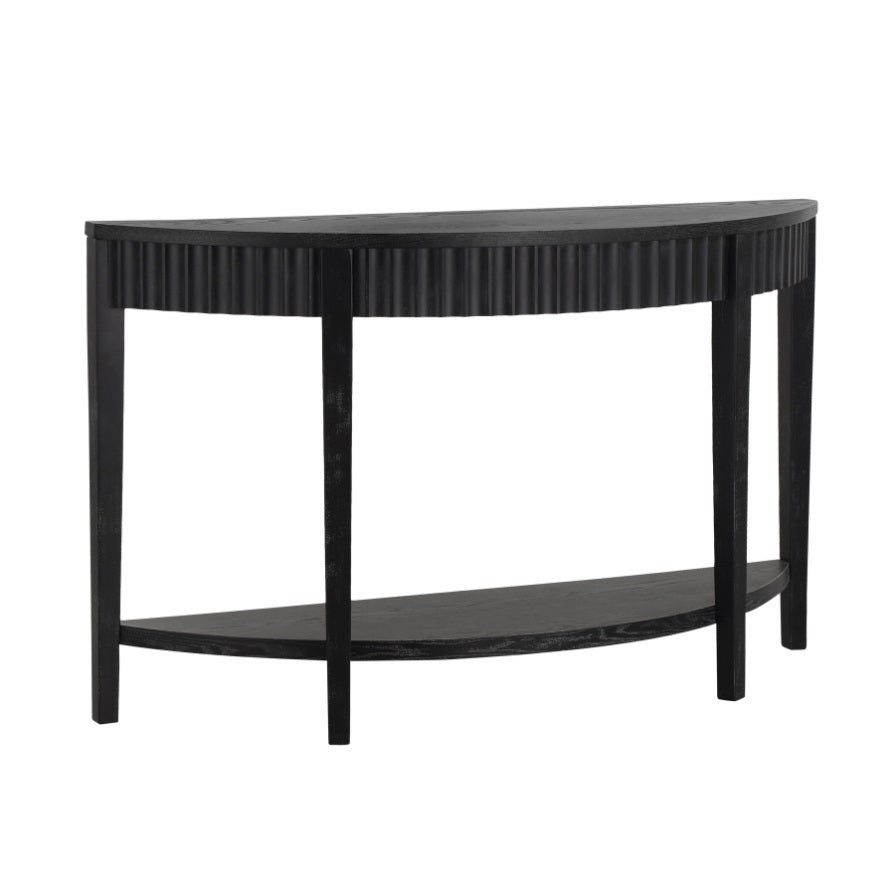 Space-Saving Flat-Back Design: Designed to sit flush against the wall, the demilune profile is ideal for narrow entryways, hallways, or smaller living spaces.